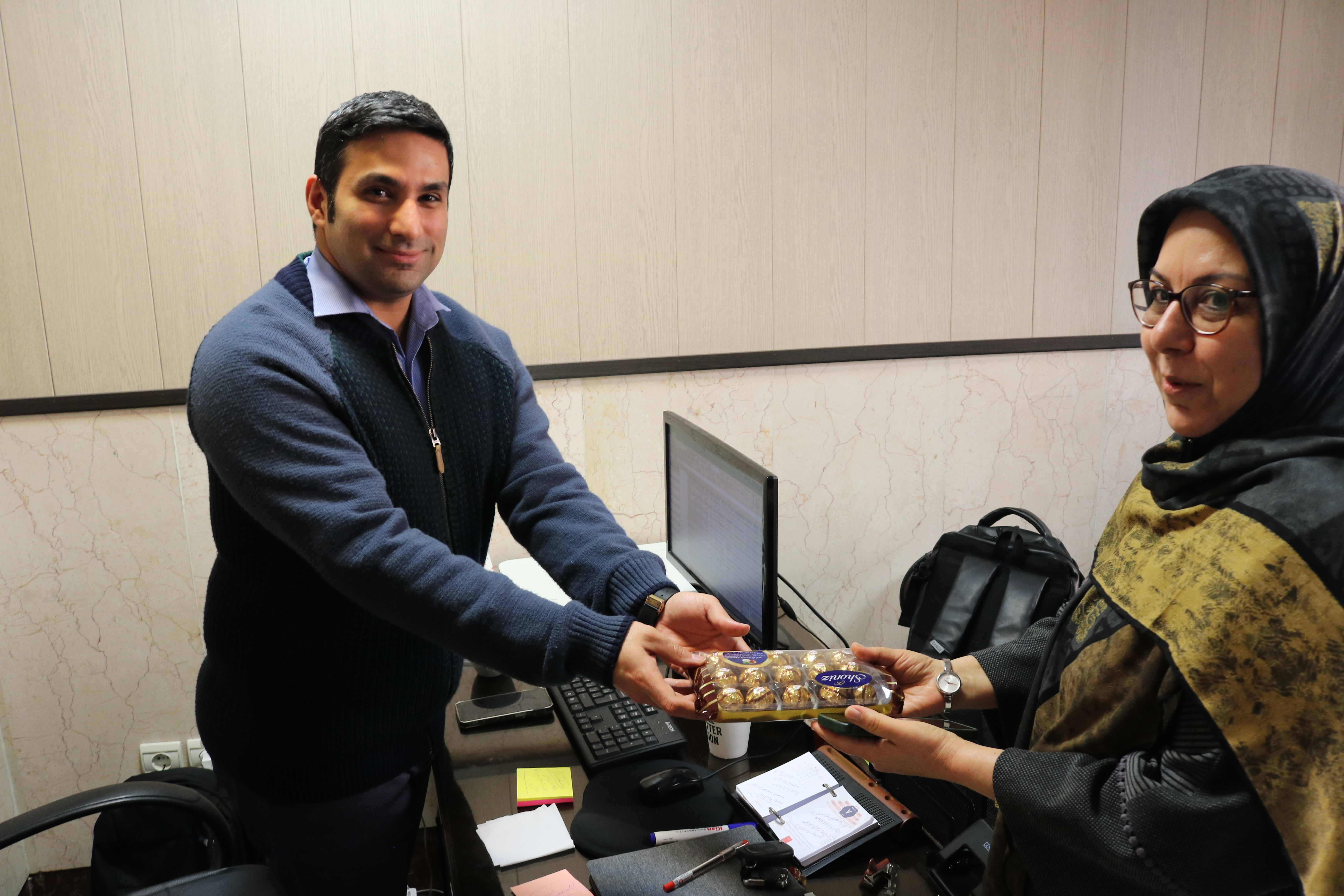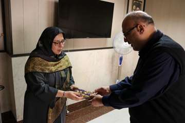 در ادامه، بستههای شیرینی به رسم یادبود و تقدیر به همکاران اهدا شد که با استقبال گرم و صمیمانه پرسنل همراه بود و فضایی سرشار از شادی و همدلی در دانشکده ایجاد کرد.